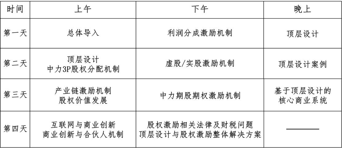 课程系统讲授企业顶层设计与股权激励的相关知识,现场掌握多套股权激励实操方法,引导企业将商业模式和资本规划等顶层设计与股权激励全面结合,构建起合理可控的股权和治理结构,实施好战与战术有机结合的股权激励机制。